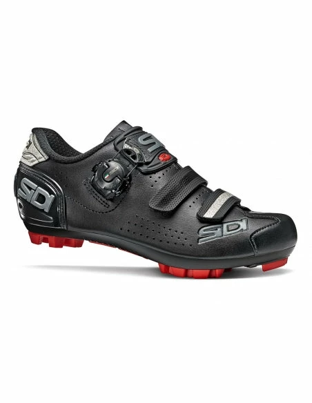 Lighter and more performing the new Sidi MTB sole is made of nylon with PU (polyurethane) inserts. The shape of the sole tread has been specifically designed for mountain bike, it allows a good grip, facilitates mud dispersion and provides the right stability. The central insert with the Sidi logo works as non-slip and it is practical and useful especially to the less experienced users.