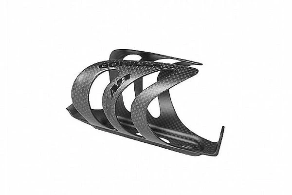 The GORILLA CAGE helps prevent bottles ejecting from cages on bumpy roads, and saddle-mounted water bottle carriers. The cage has over 2X the gripping force of conventional carbon cages due to the 6 high shouldered carbon gripping fingers, tall retention tab at the top and thicker carbon material. The GORILLA CAGE will fit on any standard cage mounts.